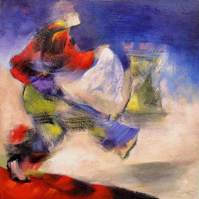 "Marches raides", 100x100 cm, Oil/canvas, 2024